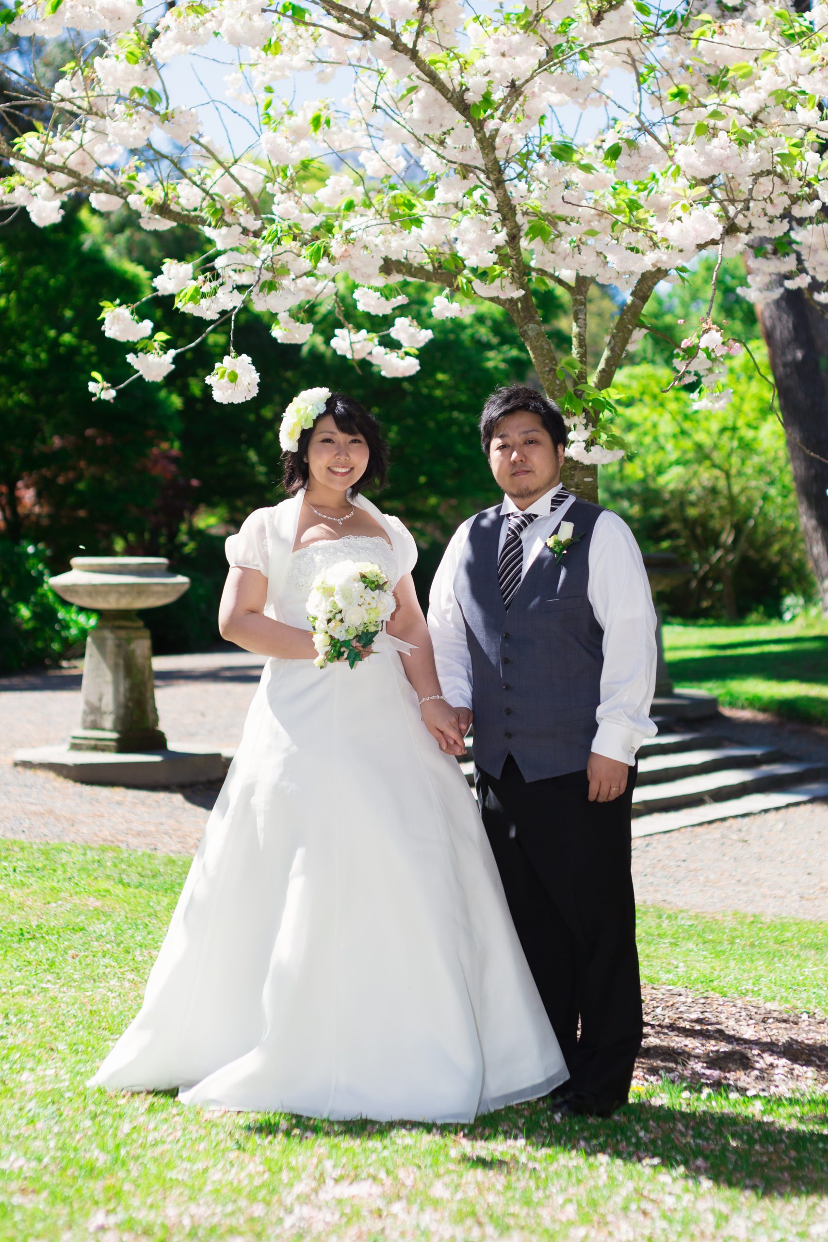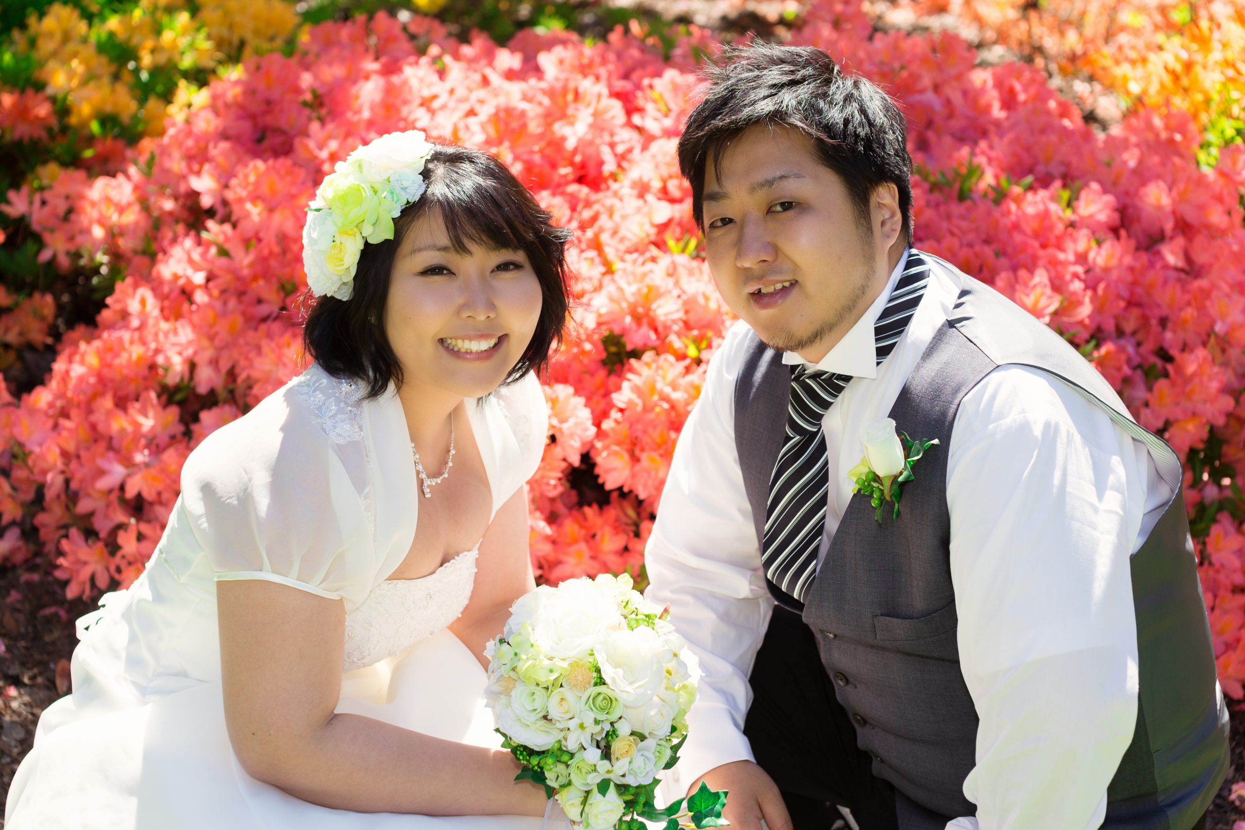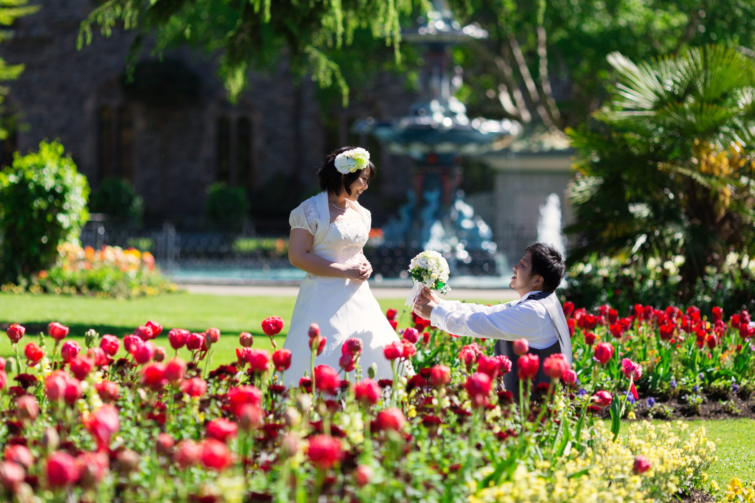 当日は天候にも恵まれ、ハグレーパークの綺麗な花々が咲く素晴らしい景色の中での撮影ができた事