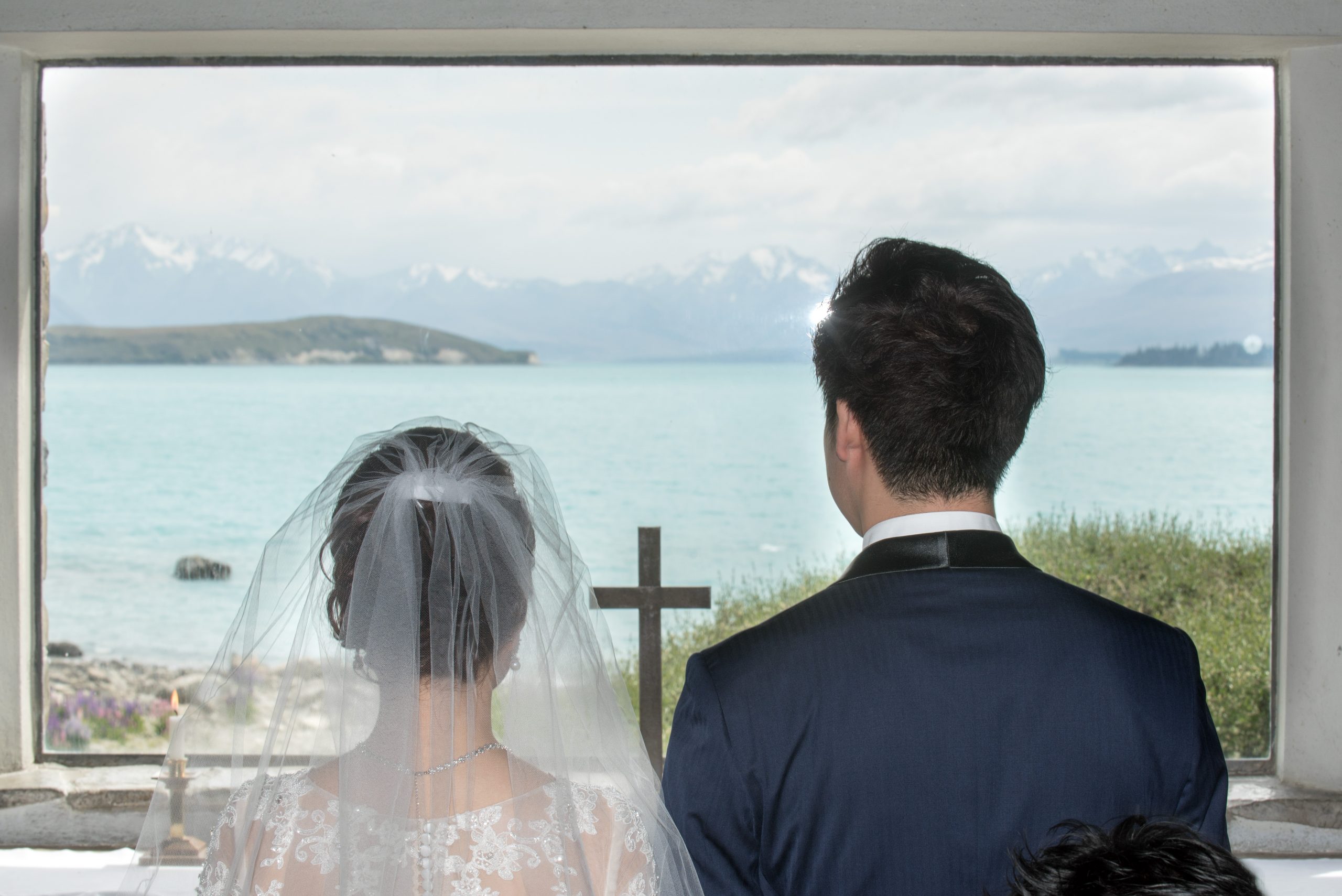当日は、雨模様かもと危惧していましたが、そんな心配もよそに、風もなく良い挙式日和でした。オーダーメイドで作られたお衣装に身をまとったお二人は、輝くほど素敵で幸せオーラでいっぱいでした。お二人のご家族に見守られて、式は厳粛に行われ感動を与えてくれるほどでした。写真撮影やフラワーシャワーでは、明るいご家族の皆さんと一緒に賑やかに笑い声が響くの中行われました。一度も訪れたことのないテカポで、挙式を挙げられた不安もおありだったと思いますが、良い挙式ができ、お二人に本当に喜んでいただけて、嬉しく思っております。