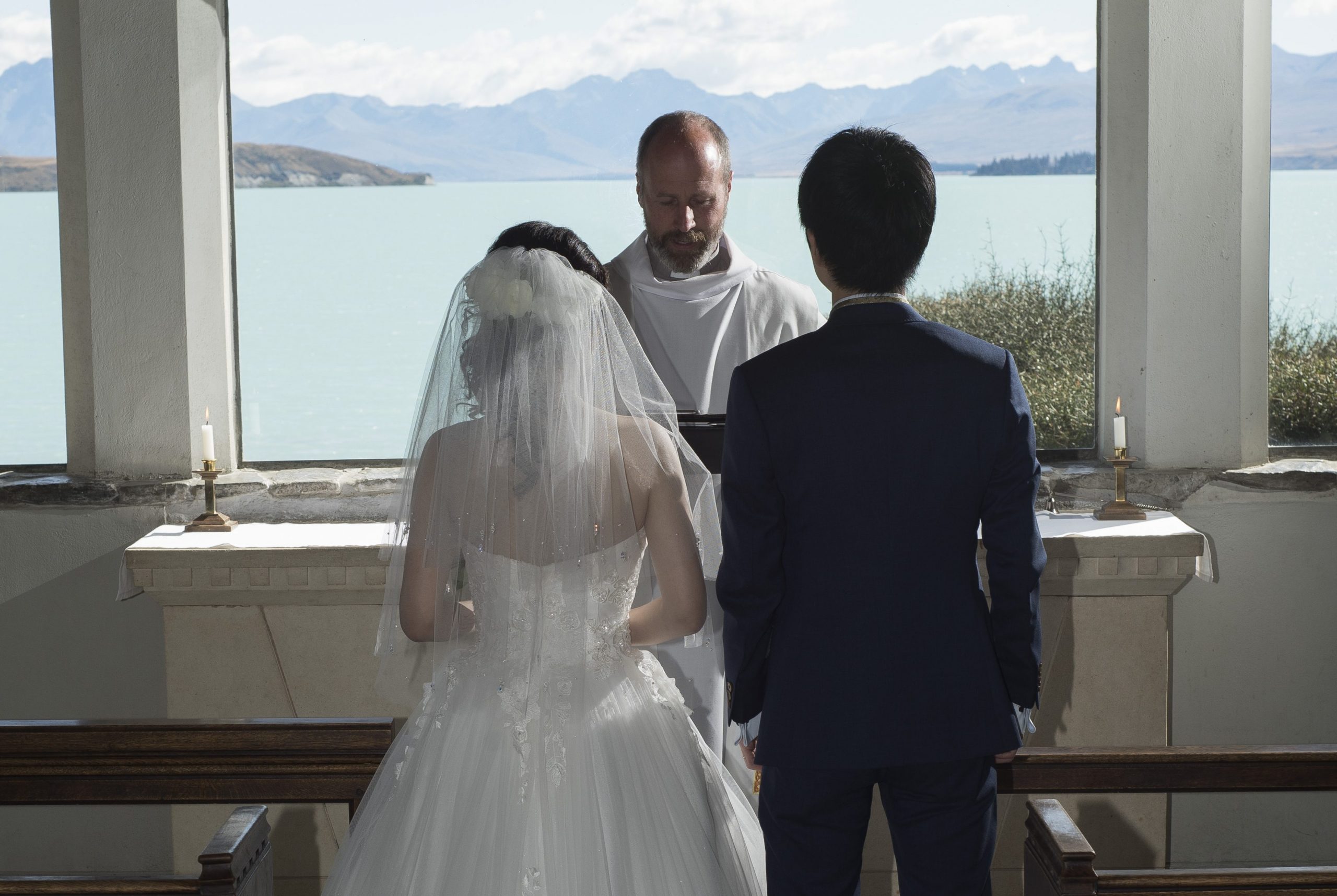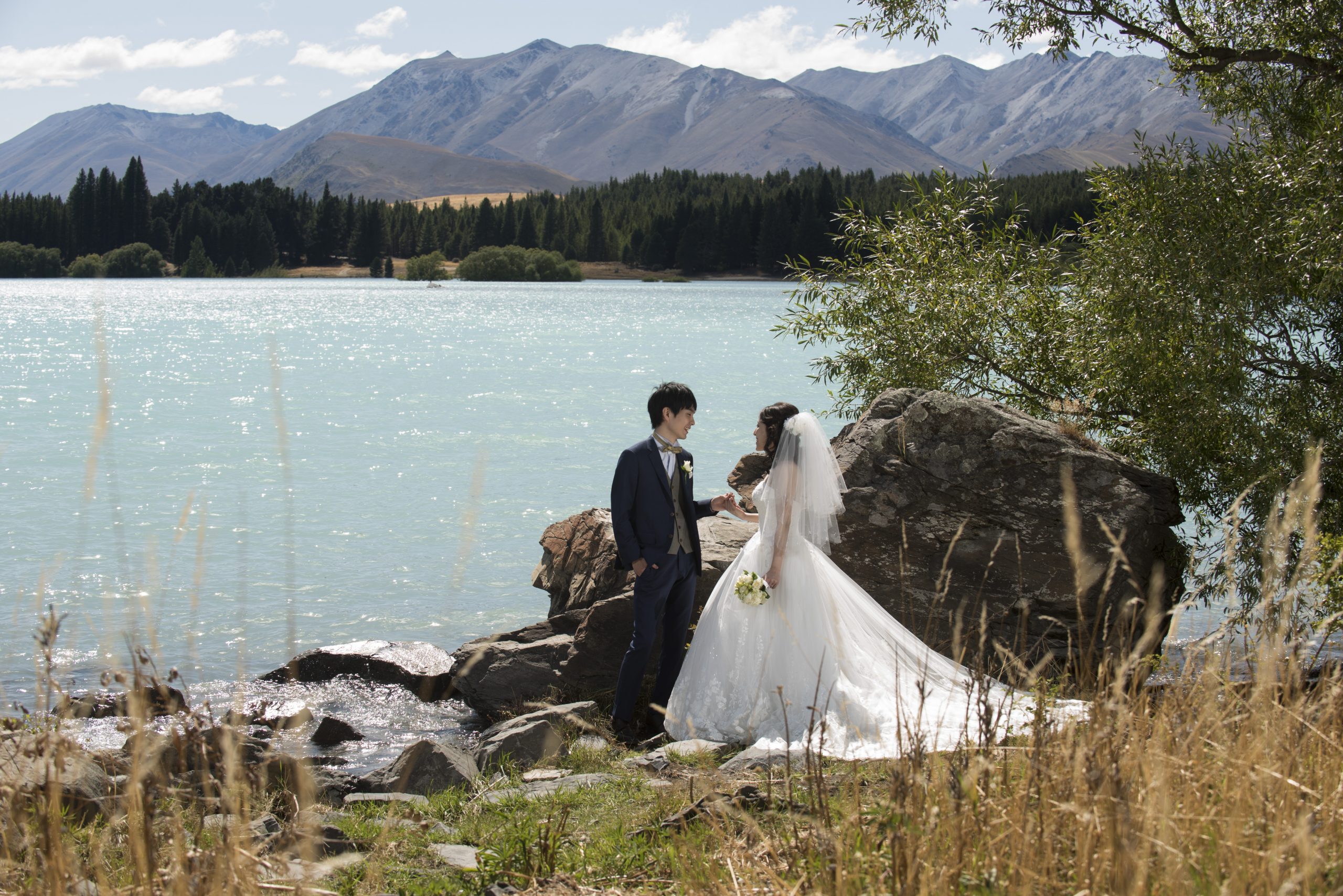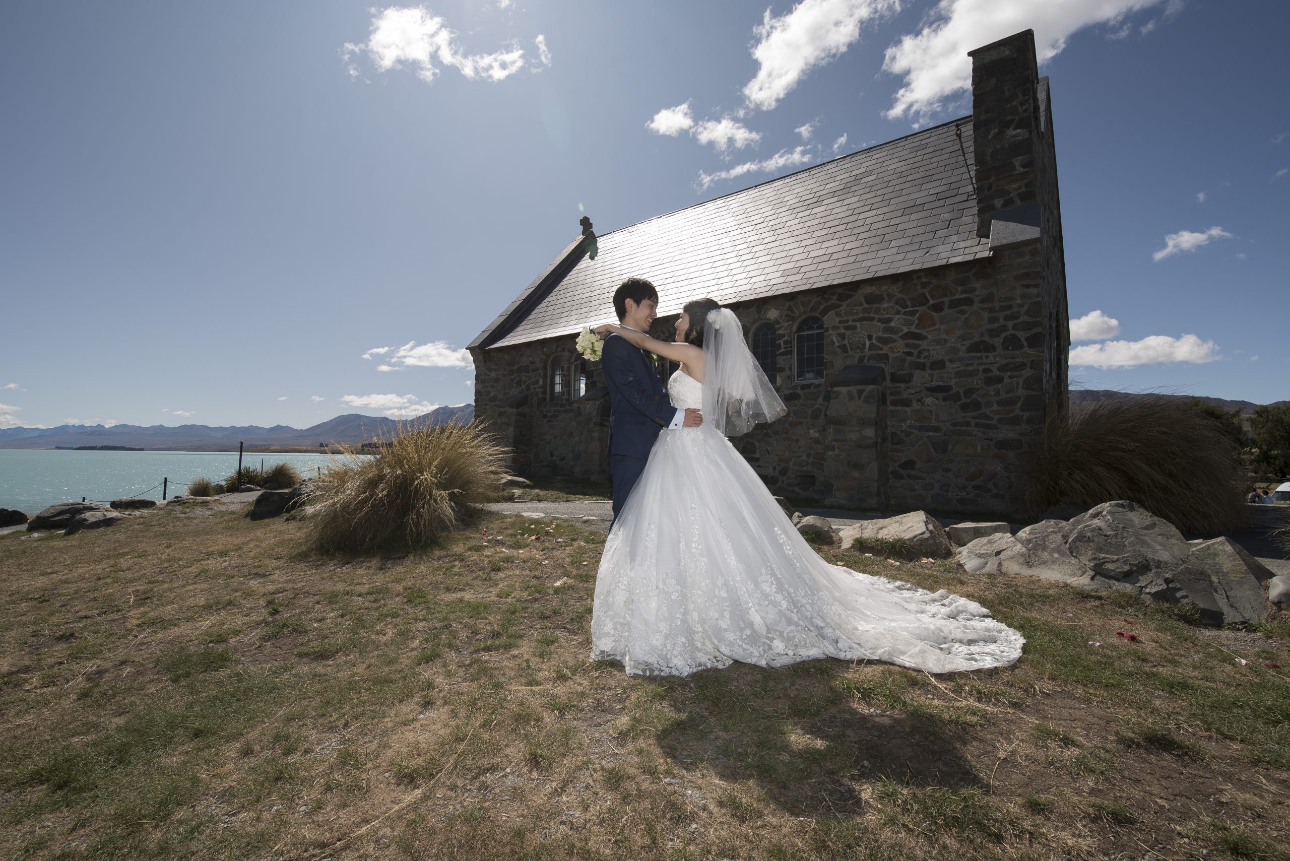 朝から絶好のお天気にも恵まれ、テカポの愛らしい教会がお二人にぴったりでした。